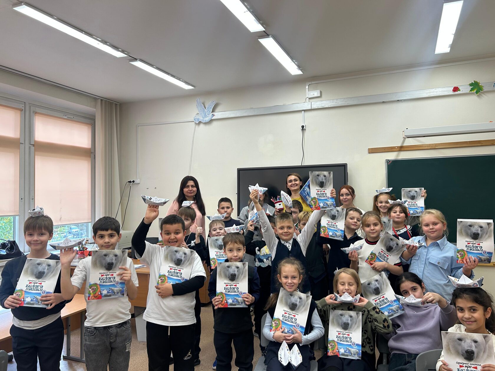 Мы знакомим ребят с «Серьезной книжкой про белого мишку», и не просто разговариваем про белого медведя, белый мишка и нерпы оживают на страницах книги и это всегда приводит в восторг не только детей, но и педагогов. Здесь мало кого можно поймать на вопросе «охотятся ли белые медведи на пингвинов», - почти все знают, - они живут на разных полюсах. Видно, что ребята ждали урок, все факты о белых медведях, которые им уже известны, подготовлены и они с радостью ими делятся: «А вы знаете, что у медведя кожа черная!», «А еще, он когда охотится, прячет лапой нос, чтобы его не заметили». Тем не менее, нам все еще есть чем их удивить. Во второй части урока второклашки узнают про ледоколы и складывают бумажный кораблик в технике оригами, и вот кораблики – лучшие игрушки советского детства умеют складывать далеко не все! Уроки по программам Просветительского центра «Белый мишка» всегда сочетают теорию и творчество, так дети через интересную для себя деятельность узнают новое об окружающем их мире.