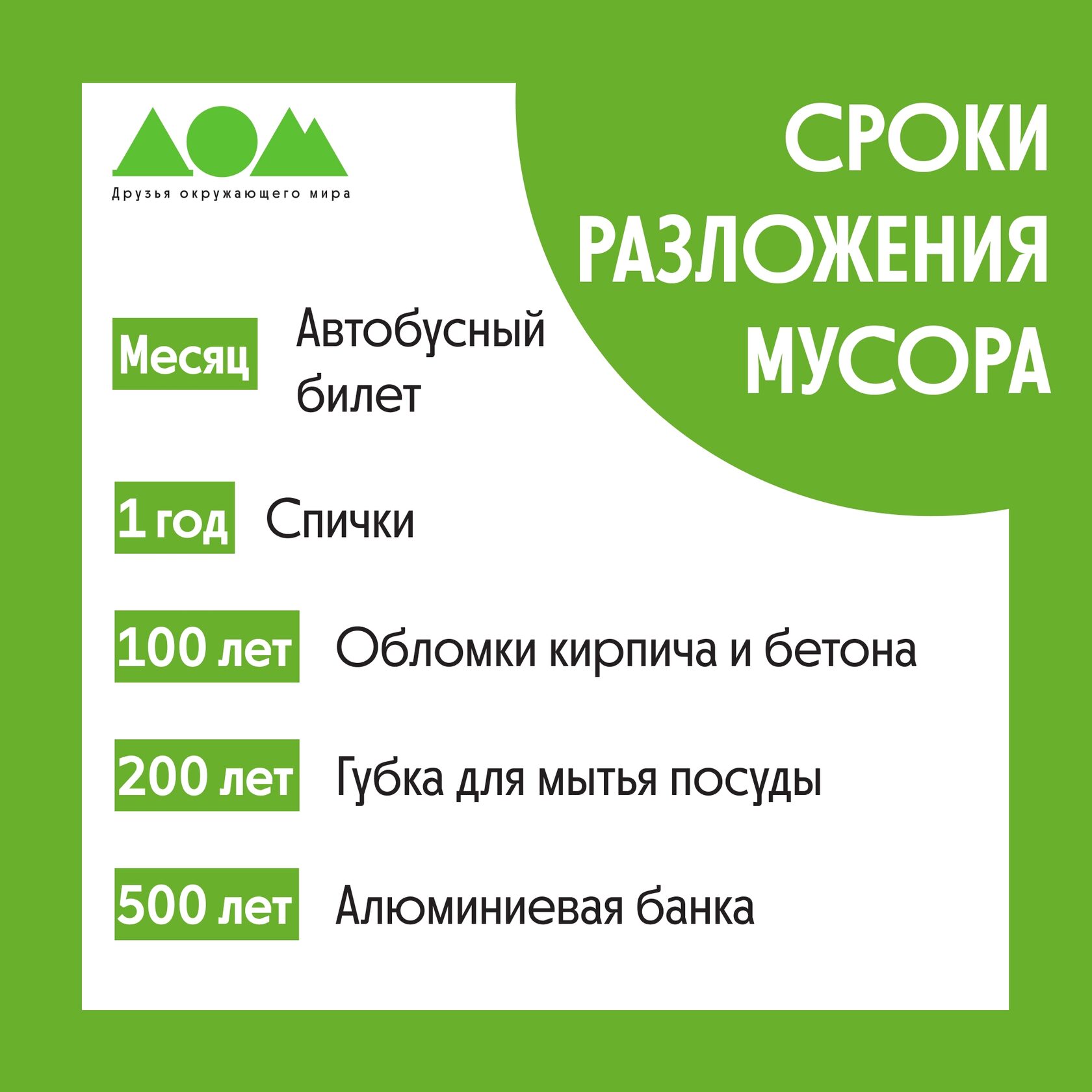 На наших новых карточках — сроки разложения мусора. Обязательно посмотрите на эти цифры, ведь они — весомый аргумент в пользу пересмотра своих привычек.