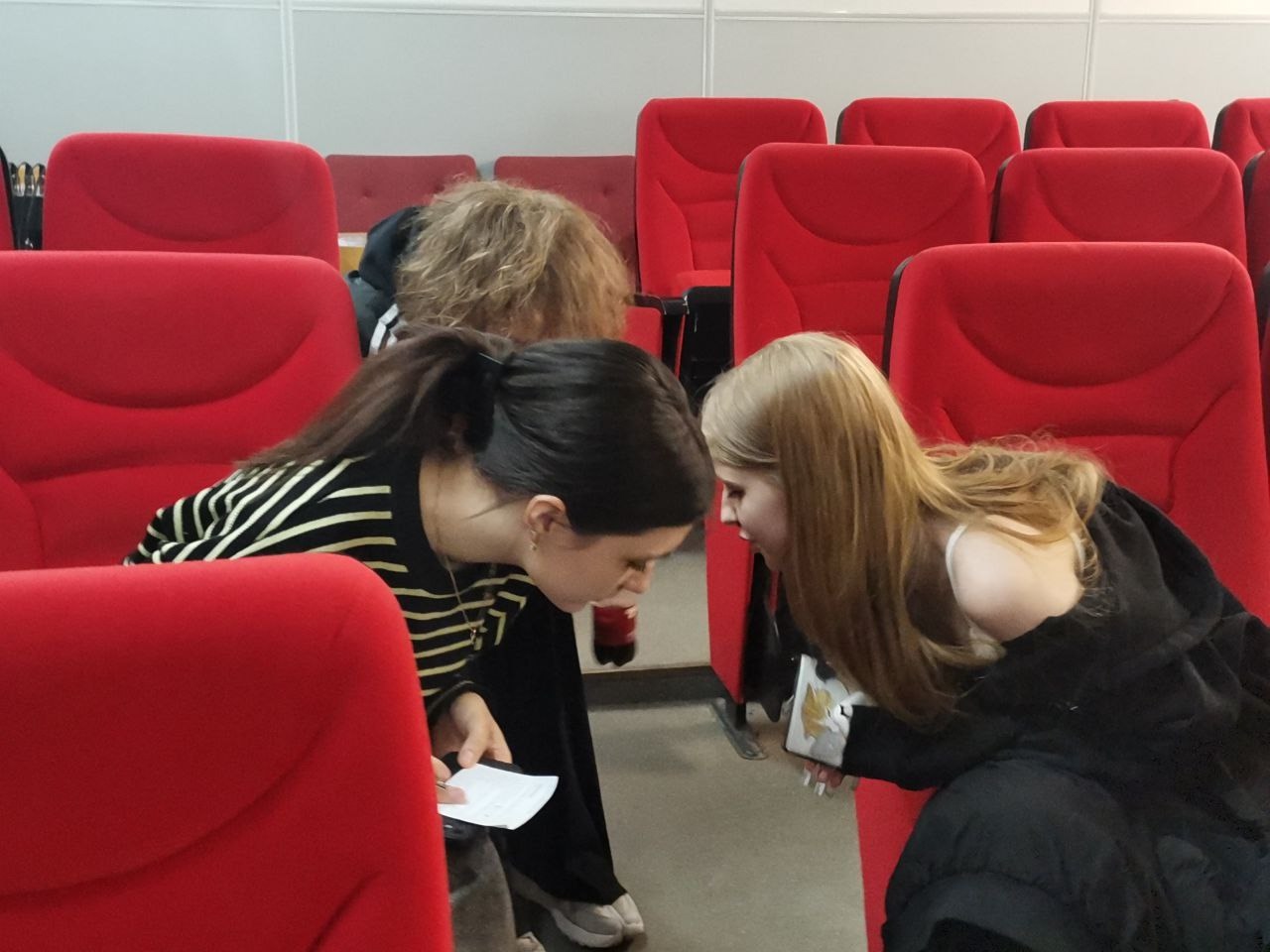 Здесь бы фильмы смотреть, но мы пришли с другой целью — провести квиз «Хозяин Арктики» для студентов первого курса специальностей «Юриспруденция» и «Дизайн». И у нас это получилось.