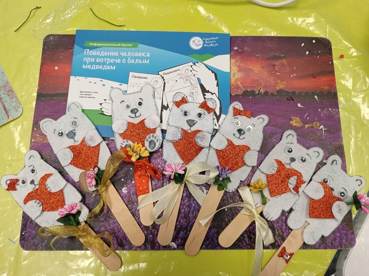 Заполярный. На очередном занятии, где собралось 12 ребят, мы говорили о том, как вести себя при встрече с белым медведем. В Мурманской области белые медведи не водятся, – скажете вы, и будете правы, но! Предупрежден – значит вооружен, – подумали мы, и сделали милый и совсем неопасный Пломбир на палочке — главный медвежий символ, которого не нужно бояться, а нужно знать и уважать.