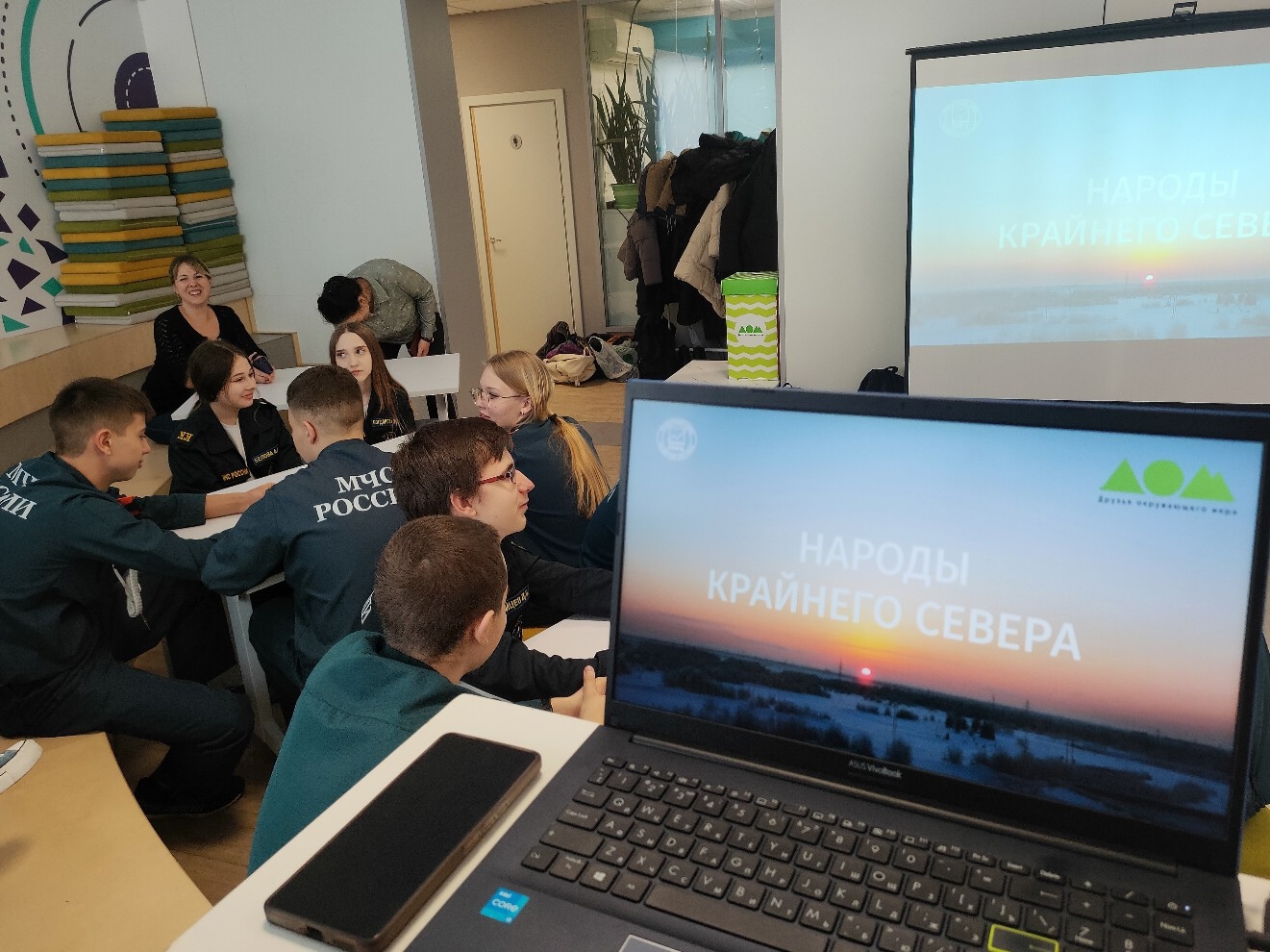 Стройными рядами появились ученики 44-й мурманской школы и сразу заполонили собой все пространство. Миссия была проста — занять первое место в нашем квизе «Народы Крайнего Севера». На старт вышли 5 команд, которые с головой окунулись в море вопросов. Задачи выйти сухими не было, а вот обогащенными новыми знаниями — приветствовалось.